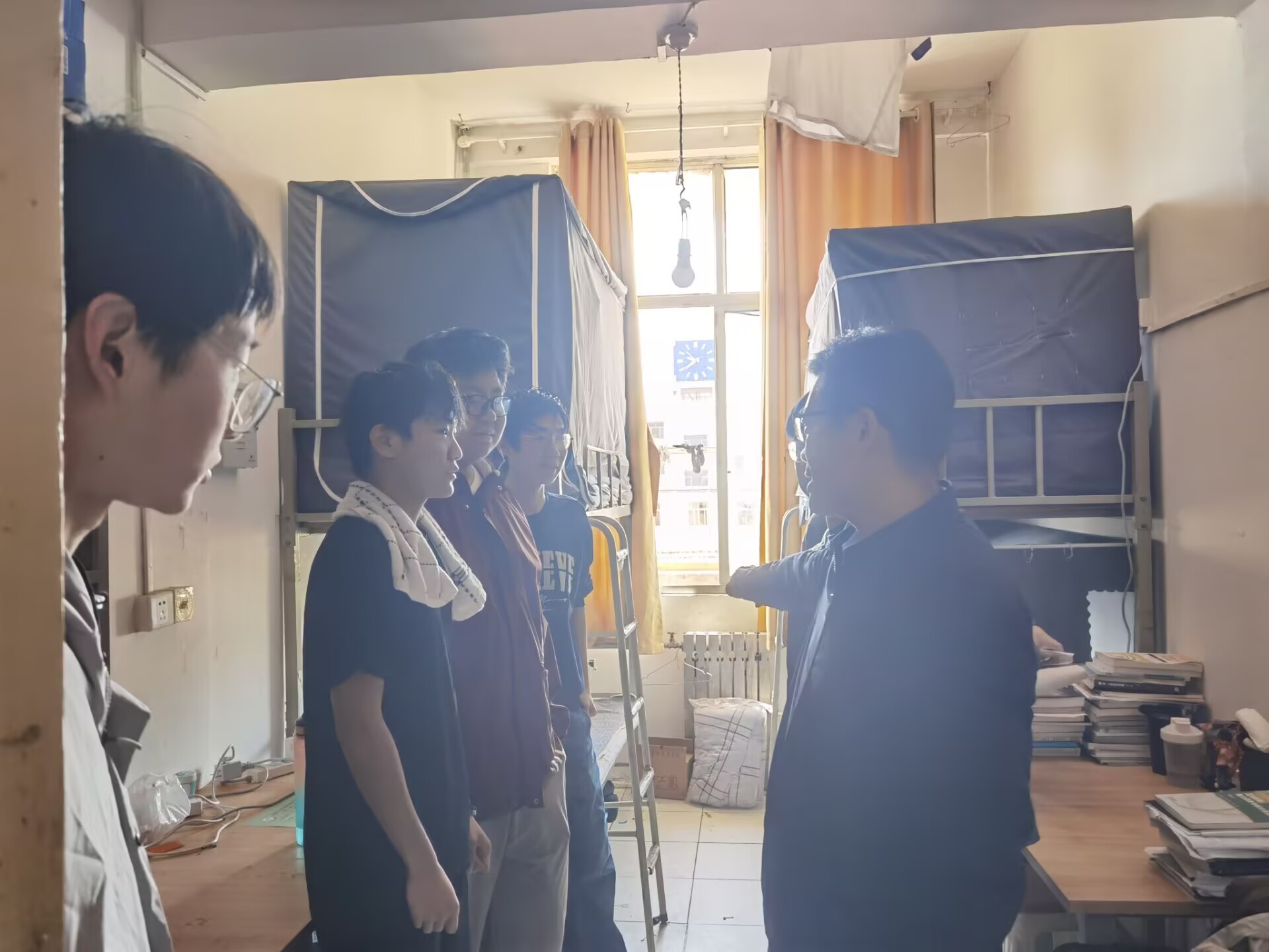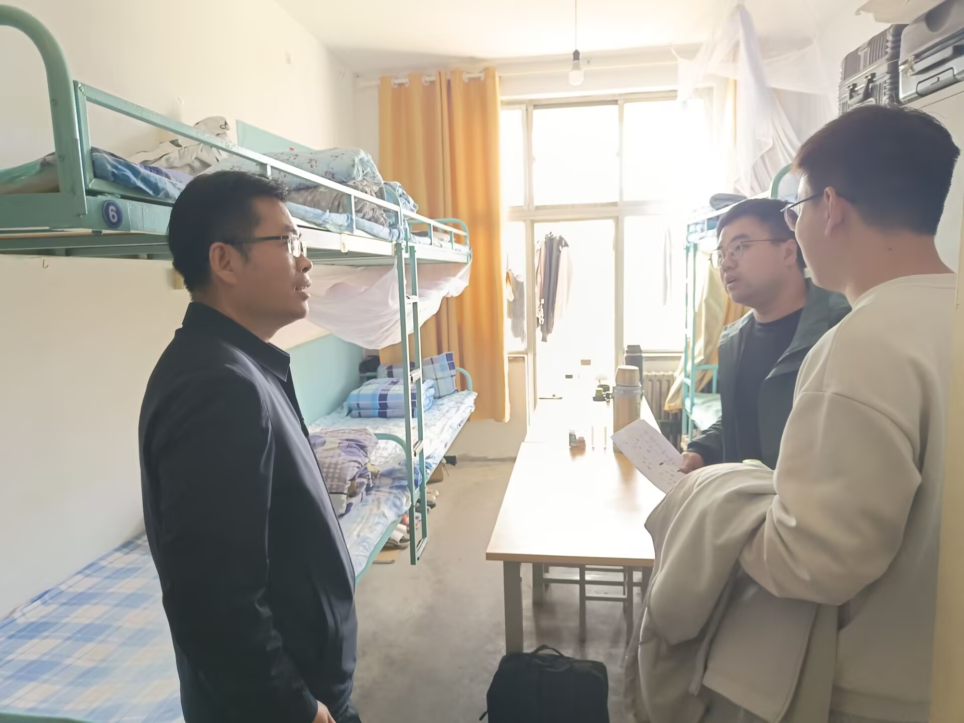 本次检查重点聚焦消防安全、用电安全、宿舍环境卫生等方面。学院检查小组对宿舍电器、插座插排使用、无人用电、卫生等情况等进行了重点查看,发现问题现场立即整改,同时提醒同学们,宿舍安全的实现不仅需要完善宿舍安全防控体系,更要求同学们筑牢安全意识防线,嘱咐同学们从自身做起,遵守学校相关安全条例规定,树立“安全第一,预防为主”的理念。此外,在检查过程中,老师们还详细询问同学们未来人生规划,认真听取并回应学生们对宿舍设施、学习生活等方面的建议,确保学生权益得到有效保障。