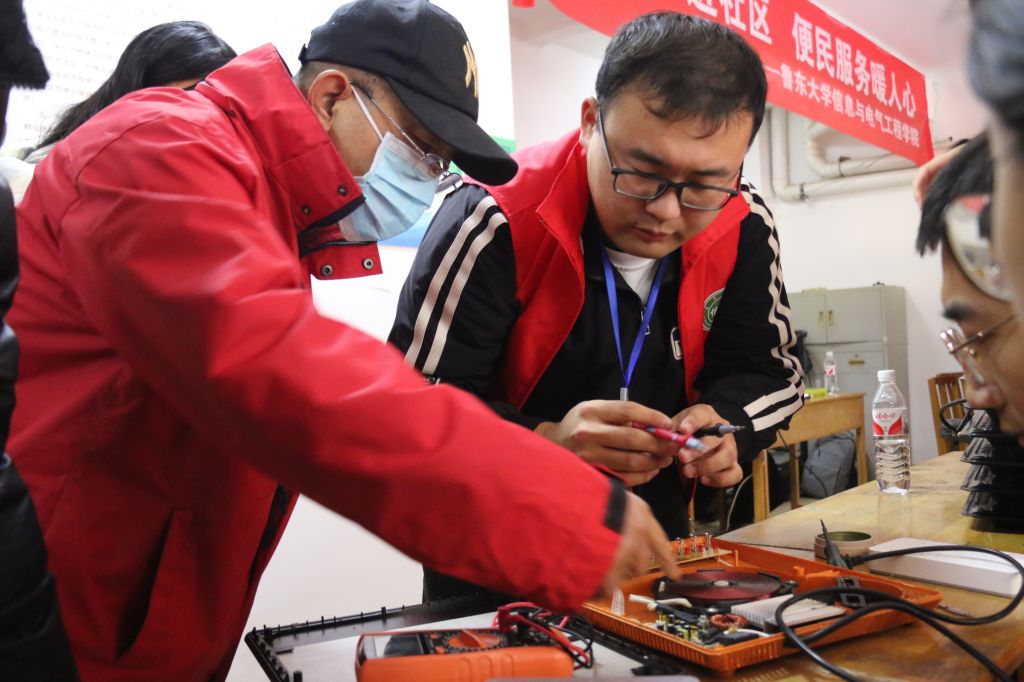 当天,志愿者们早早来到现场,将各种维修工具摆放整齐,做好准备工作。社区居民带着“罢工”的电脑、笔记本、电暖器、烧水壶等各类家电和机器设备挤满了活动现场。志愿者们认真查找原因,迅速定位问题,有条不紊地对电器进行拆卸、检测、维修、安装,凭借扎实的专业知识和熟练的实践技能以及认真负责的态度,志愿者们很快便让这些“问题”物品“重获新生”。过程中志愿者们还不时向居民们传授一些家电、设备维护和保养的小常识。服务活动得到了社区居民的一致好评。