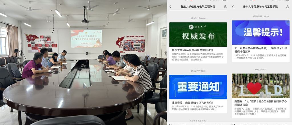 根据学校迎新工作要求,学院积极筹备,周密部署,分别召开2024年新生入学准备工作会和迎新安排部署会,成立工作领导小组,研究通过了《信息与电气工程学院2024年迎新工作方案》,详细介绍了任务分工、报到流程、现场布置、新闻宣传等工作,同时借助微信公众号等媒体平台,推出新生报到须知、物品准备、心理调适指南等专题文章,为新生报到保驾护航。