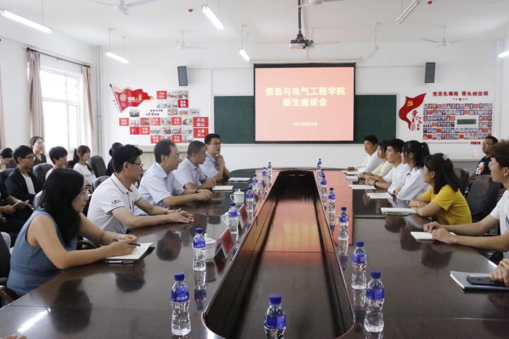 座谈会上,曲荣君、学生工作处、财经处负责人共同为学院家庭困难新生发放5万元爱心助学金。(信息与电气工程学院 撰稿:刘江华 审核:郭帅)