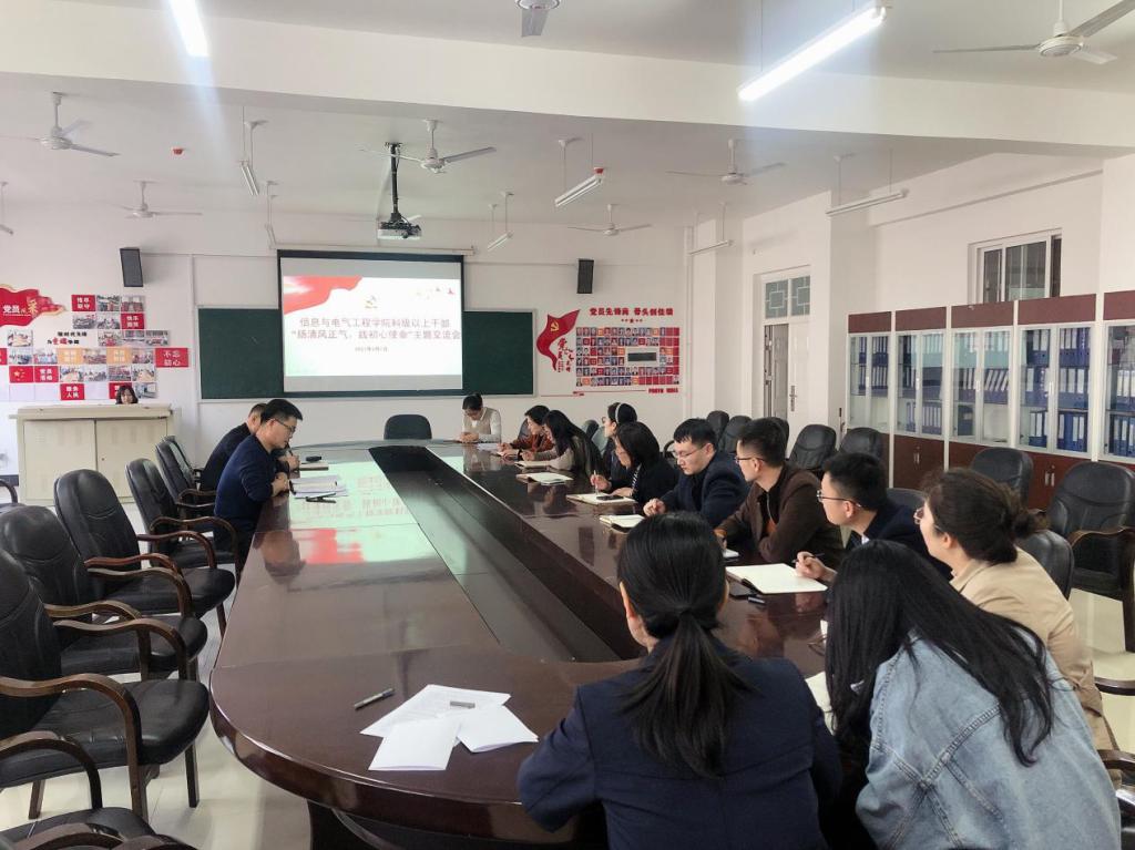 4月1日下午,信息与电气工程学院启动部署第二届廉政文化月活动,组织召开科级以上干部“扬清风正气,践初心使命”讨论交流会,党总支书记郭帅主持会议,学院党总支委员、科级以上干部参加会议。