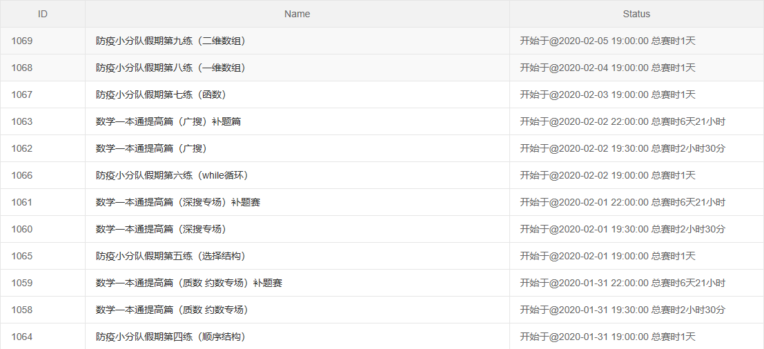 学院积极协调相关专业老师,加班加点在搭建的网络平台(icpc.ldu.edu.cn)上为学生布置C语言程序设计的相关题目,题目来自老师上课的教学案例、学生的实验以及相关比赛习题。作业采用竞赛方式进行,每天12点开始,至第二天12点结束,根据难度安排数量不等的题目。广大学生积极参与,其中一组学生这样说:“面对疫情,我们选择做题;面对疫情,我们选择坚持。”我们相信,只有不忘初心、牢记使命,在困难时刻凝心聚力,共克时艰,才会有更加美好的明天。”(信息与电气工程学院:王芹芹 审核:郭帅)