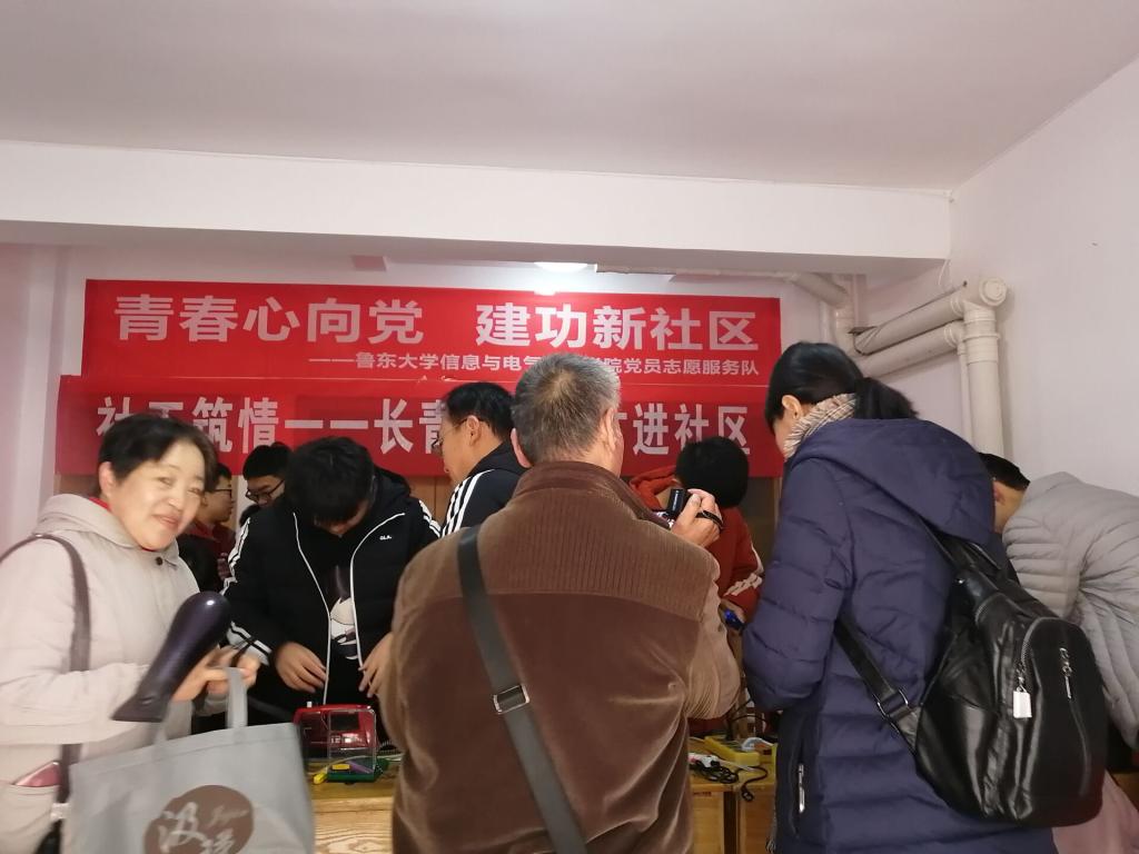 为强化“不忘初心、牢记使命”主题教育效果,11月27日上午,白石街道长青社区“双报到”单位鲁东大学信息与电气工程学院党员师生到社区开展主题为“青春心向党,建功新社区”党员义务维修志愿服务活动,此次活动由信息与电气工程学院党总支书记杜庆君带队,携师生20余人参加。