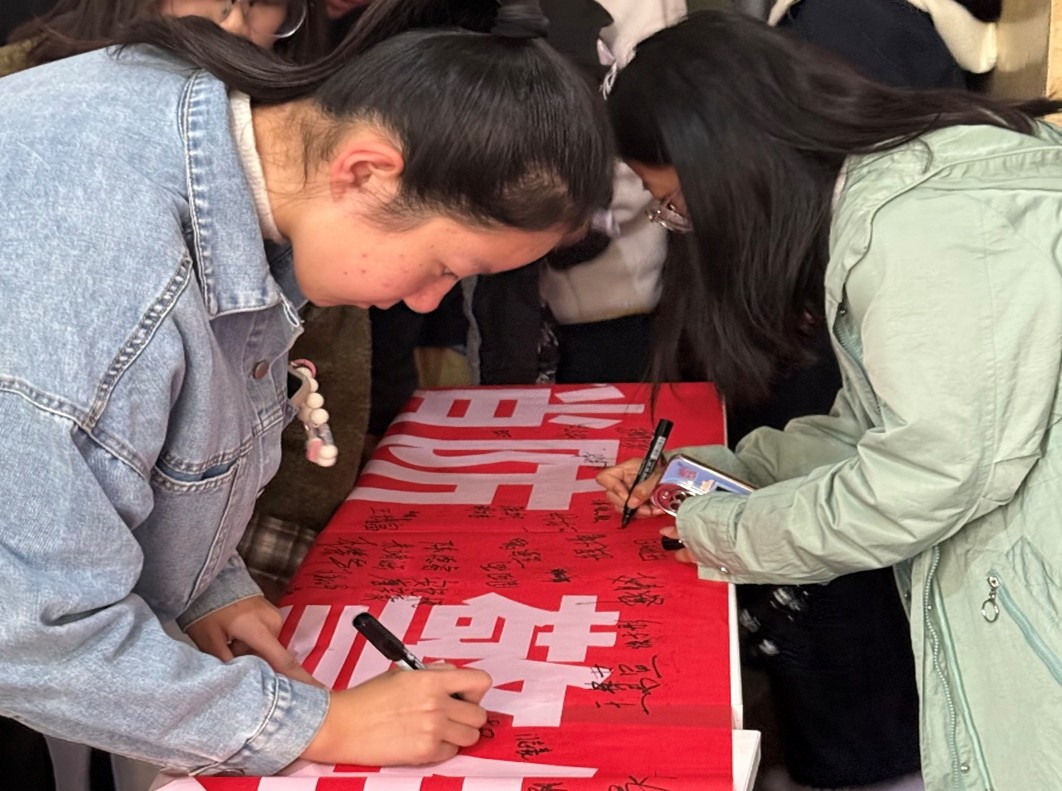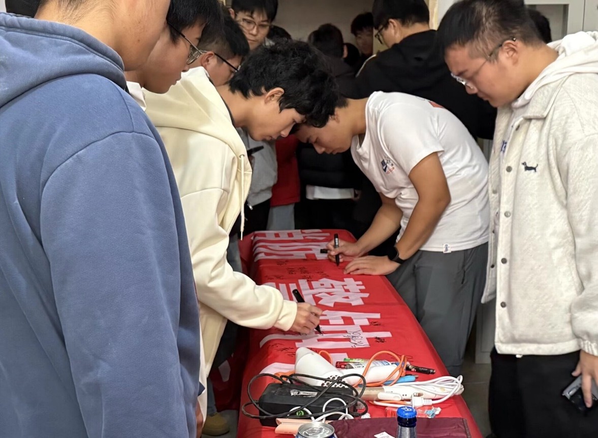 学院进行了“安全社区建设我承诺”的集体签名活动。大家郑重地在承诺墙上签下自己的名字,表达了自觉遵守宿舍管理规定、共同维护社区安全的决心。