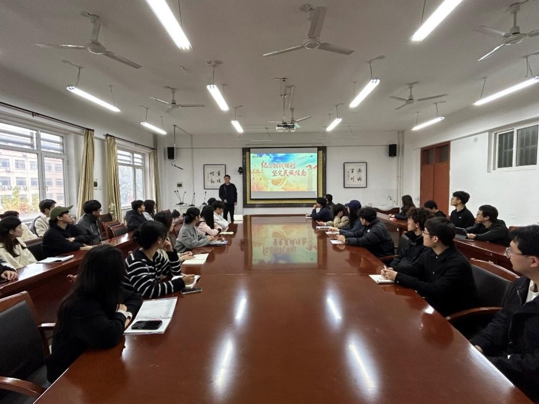 为深入学习贯彻习近平新时代中国特色社会主义思想,弘扬伟大抗战精神,引导学院研究生铭记历史、珍爱和平、坚定理想信念,2025年11月7日下午,计算机与人工智能学院院长于海生教授以“纪念抗战胜利,坚定民族信念”为主题,在21号教学楼414为全体研究生讲授形势与政策课。